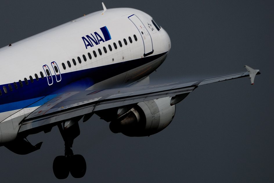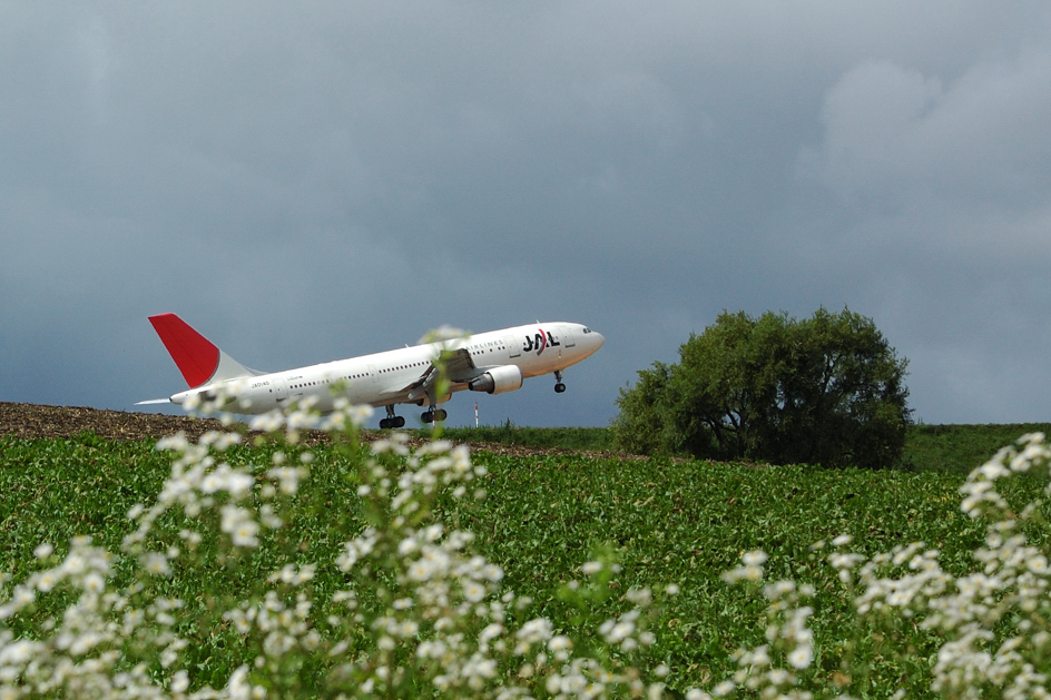 夜霧で滑走路の向こう端がぼんやりと…